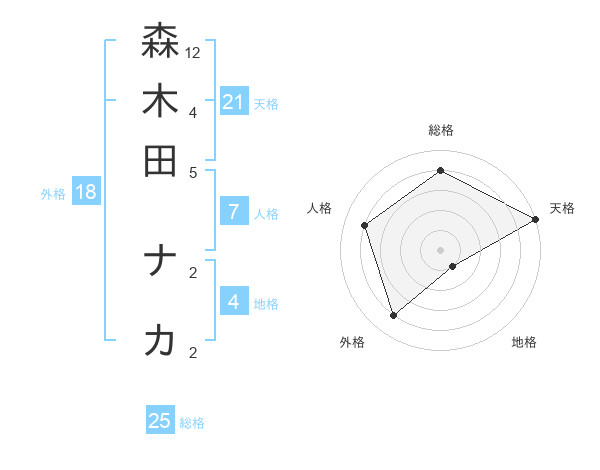 森木田 ナカさんを姓名の画数から五運を鑑定