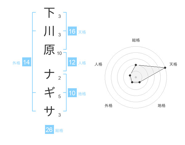 下川原 ナギサさんの天格は16画の5点