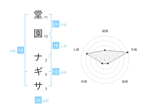 堂園 ナギサさんを姓名の画数から五運を鑑定