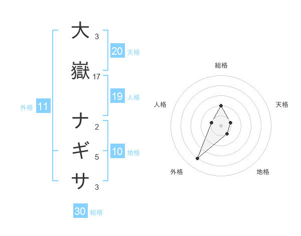 大嶽 ナギサさんを姓名の画数から五運を鑑定