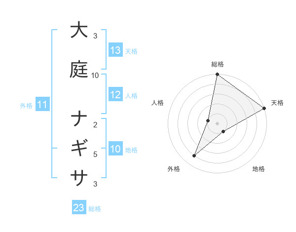 大庭 ナギサさんを姓名の画数から五運を鑑定