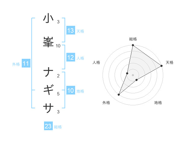 小峯 ナギサさんを姓名の画数から五運を鑑定