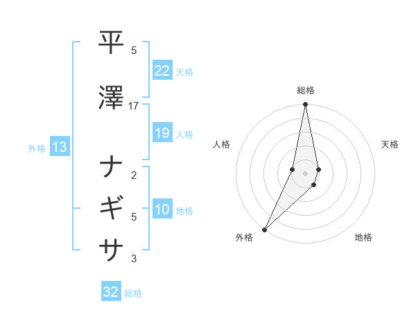 平澤 ナギサさんを姓名の画数から五運を鑑定