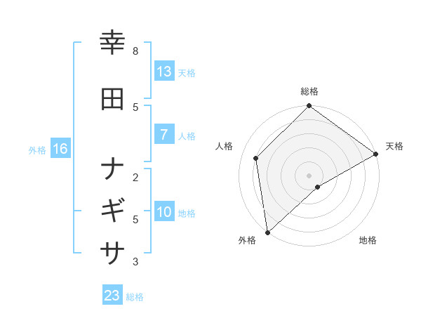 幸田 ナギサさんの天格は13画の5点!