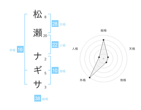 松瀬 ナギサさんの外格は16画の5点!