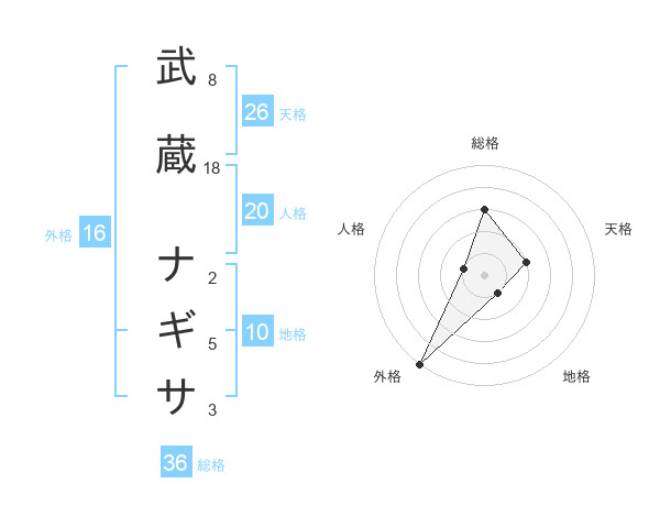 武蔵 ナギサさんを姓名の画数から五運を鑑定