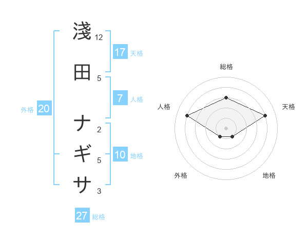 淺田 ナギサさんを姓名の画数から五運を鑑定