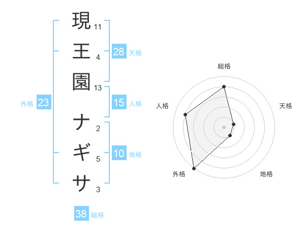 現王園 ナギサさんを姓名の画数から五運を鑑定