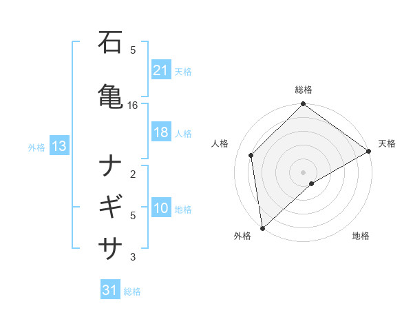 石亀 ナギサさんを姓名の画数から五運を鑑定