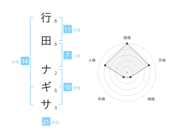 行田 ナギサさんを姓名の画数から五運を鑑定