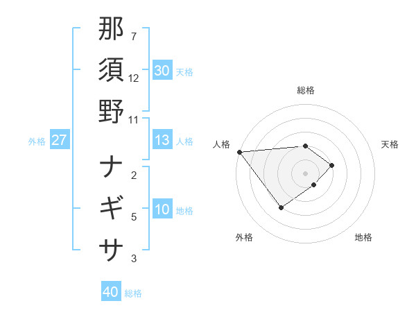那須野 ナギサさんの天格は30画の2点!