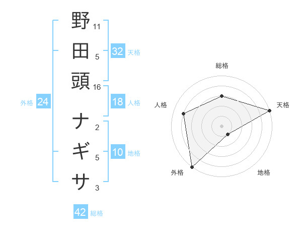 野田頭 ナギサさんを姓名の画数から五運を鑑定
