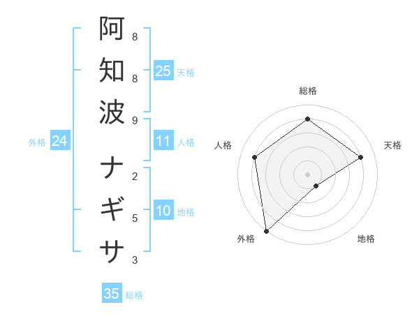 阿知波 ナギサさんを姓名の画数から五運を鑑定