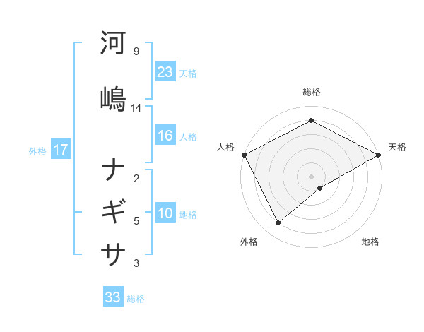 河嶋 ナギサさんを姓名の画数から五運を鑑定