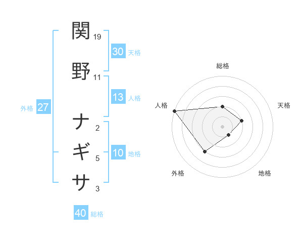 関野 ナギサさんを姓名の画数から五運を鑑定