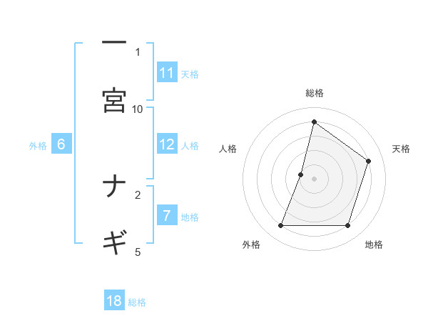 一宮 ナギさんを姓名の画数から五運を鑑定