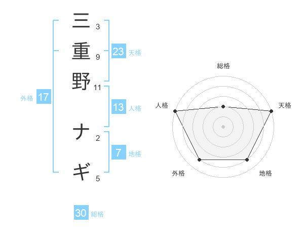 三重野 ナギさんを姓名の画数から五運を鑑定