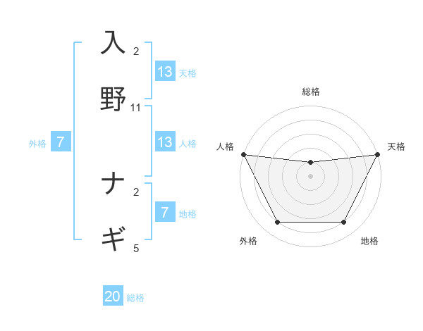 入野 ナギさんの総格は20画の1点!