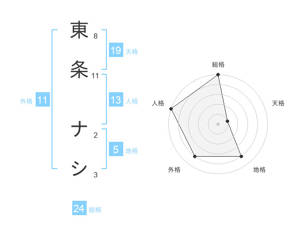 東条 ナシさんの外格は11画の4点!