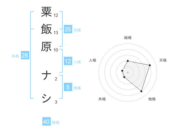 粟飯原 ナシさんの天格は35画の4点!