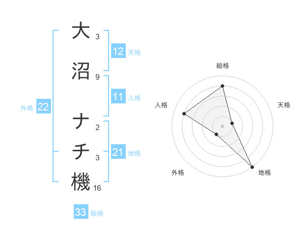 大沼 ナチ機さんを姓名の画数から五運を鑑定