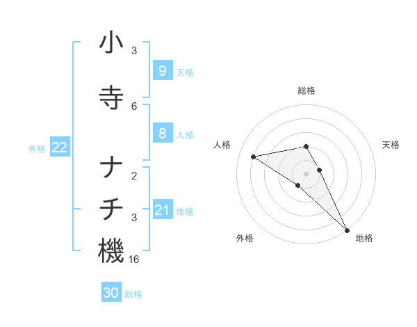 小寺 ナチ機さんの総格は30画の2点!