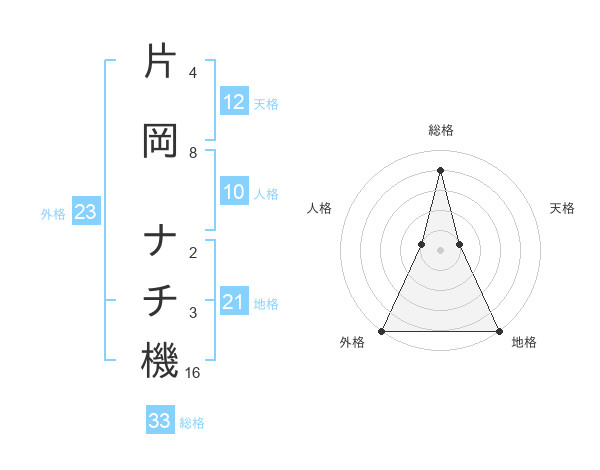 片岡 ナチ機さんの総格は33画の4点!