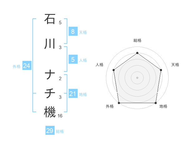 石川 ナチ機さんを姓名の画数から五運を鑑定