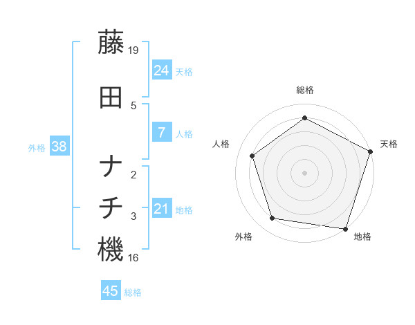 藤田 ナチ機さんの総格は45画の4点