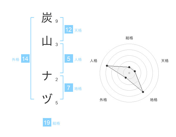 炭山 ナヅさんを姓名の画数から五運を鑑定