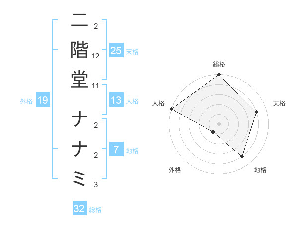 二階堂 ナナミさんの総格は32画の5点!