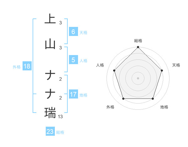 上山 ナナ瑞さんを姓名の画数から五運を鑑定