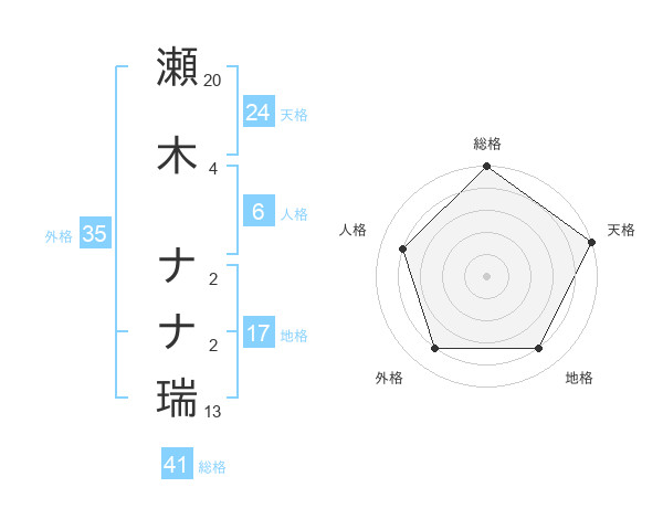 瀬木 ナナ瑞さんの天格は24画の5点!