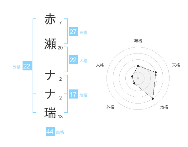 赤瀬 ナナ瑞さんの天格は27画の3点!