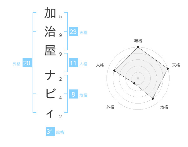 加治屋 ナビィさんを姓名の画数から五運を鑑定