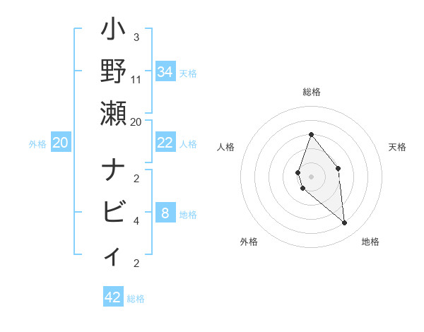 小野瀬 ナビィさんを姓名の画数から五運を鑑定