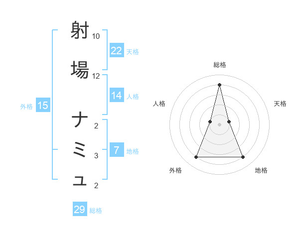 射場 ナミュさんを姓名の画数から五運を鑑定
