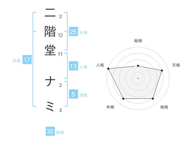 二階堂 ナミさんを姓名の画数から五運を鑑定