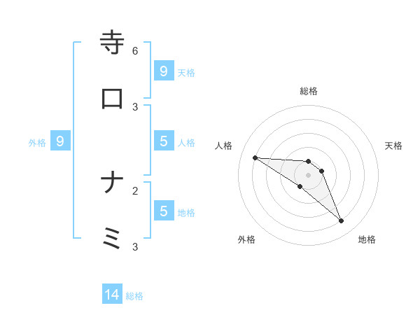 寺口 ナミさんの地格は5画の4点!