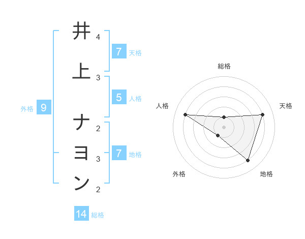 井上 ナヨンさんを姓名の画数から五運を鑑定