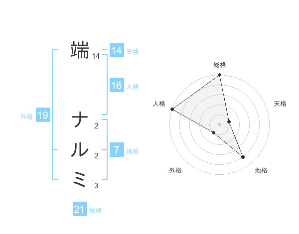 端 ナルミさんの総格は21画の5点!