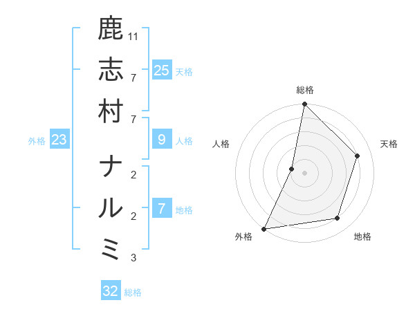 鹿志村 ナルミさんの外格は23画の5点!