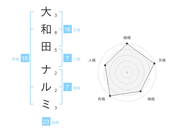 大和田 ナルミさんの総格は23画の5点!