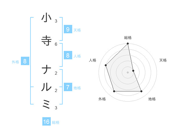 小寺 ナルミさんを姓名の画数から五運を鑑定