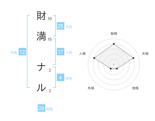 財満 ナルさんの天格は25画の4点!