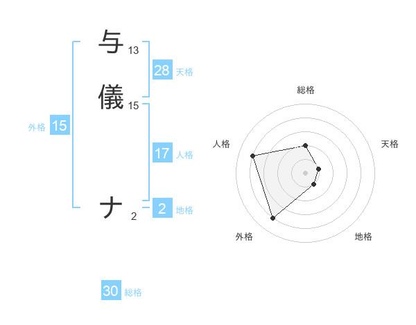 与儀 ナさんの外格は15画の4点!