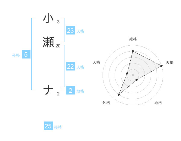 小瀬 ナさんを姓名の画数から五運を鑑定