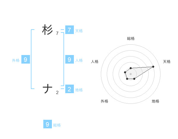 杉 ナさんの総格は9画の1点!