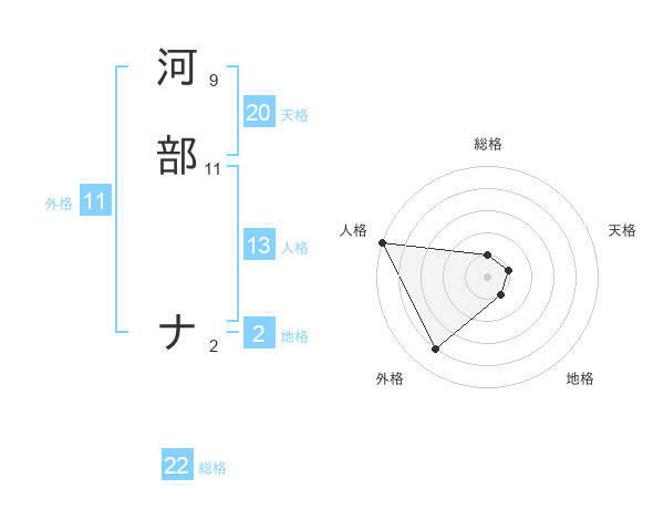 河部 ナさんの総格は22画の1点!