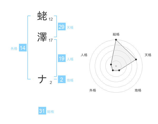 蛯澤 ナさんを姓名の画数から五運を鑑定